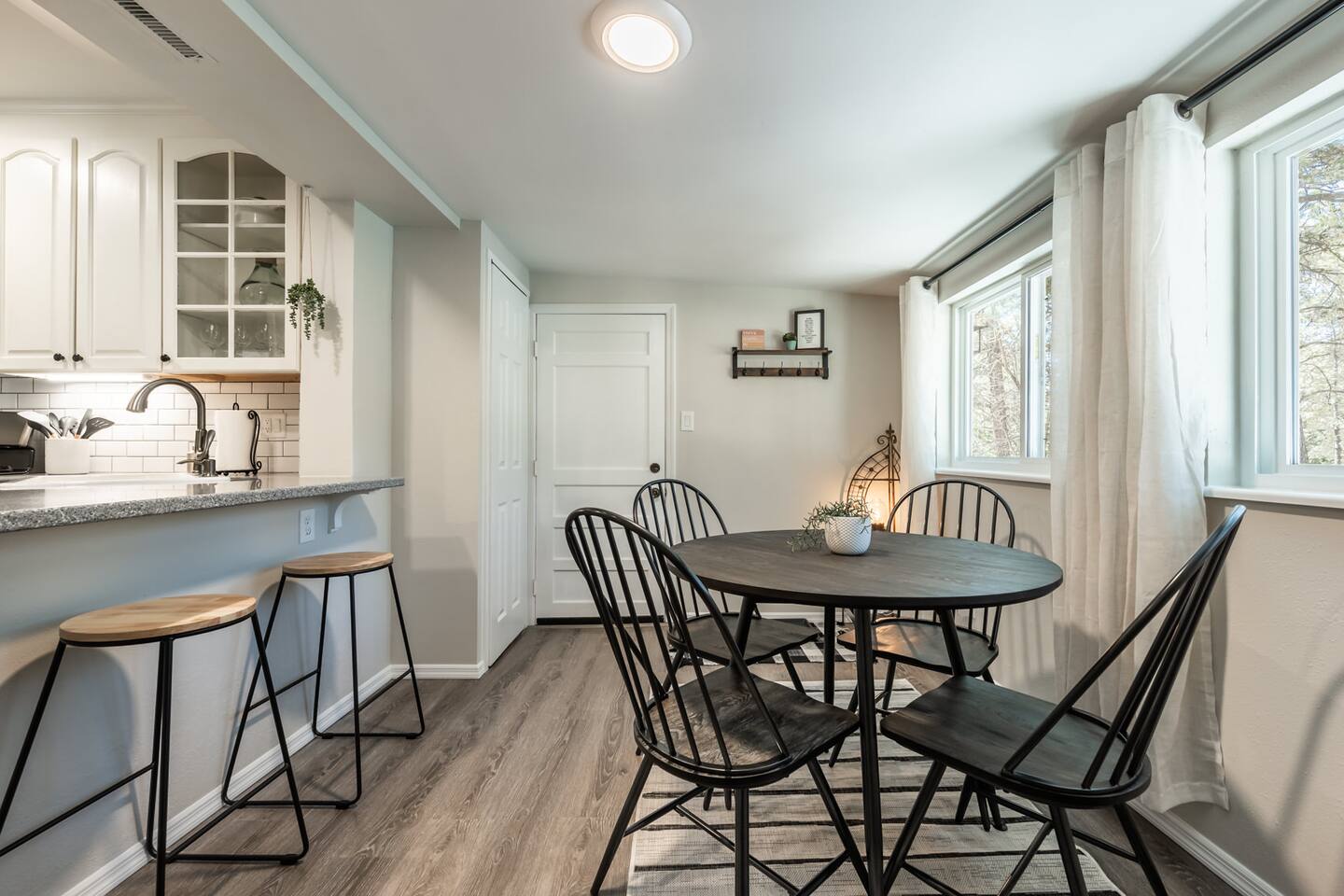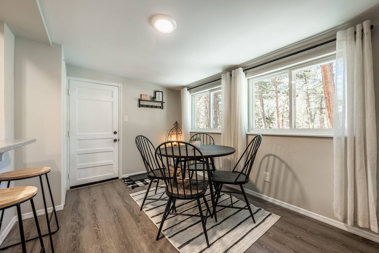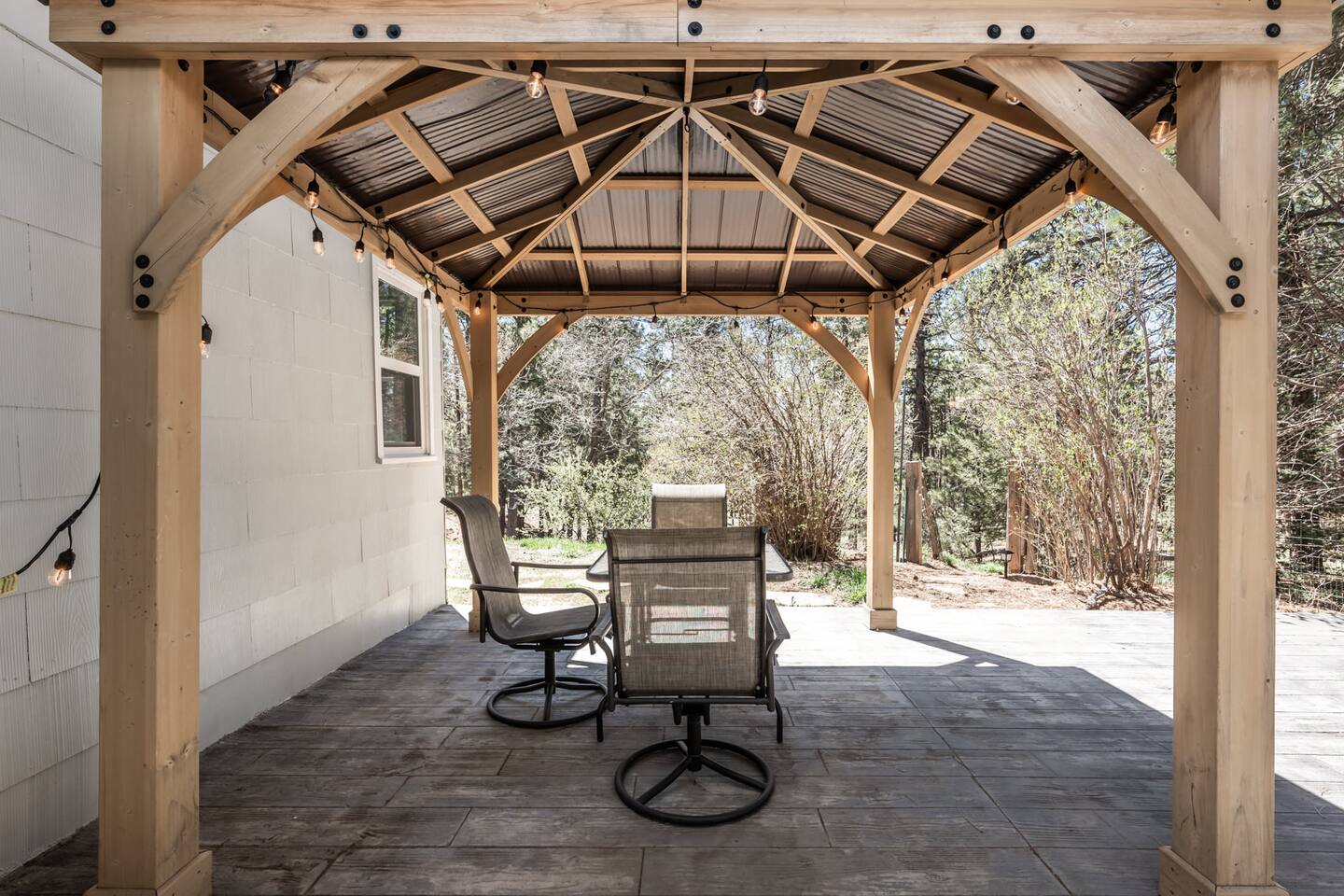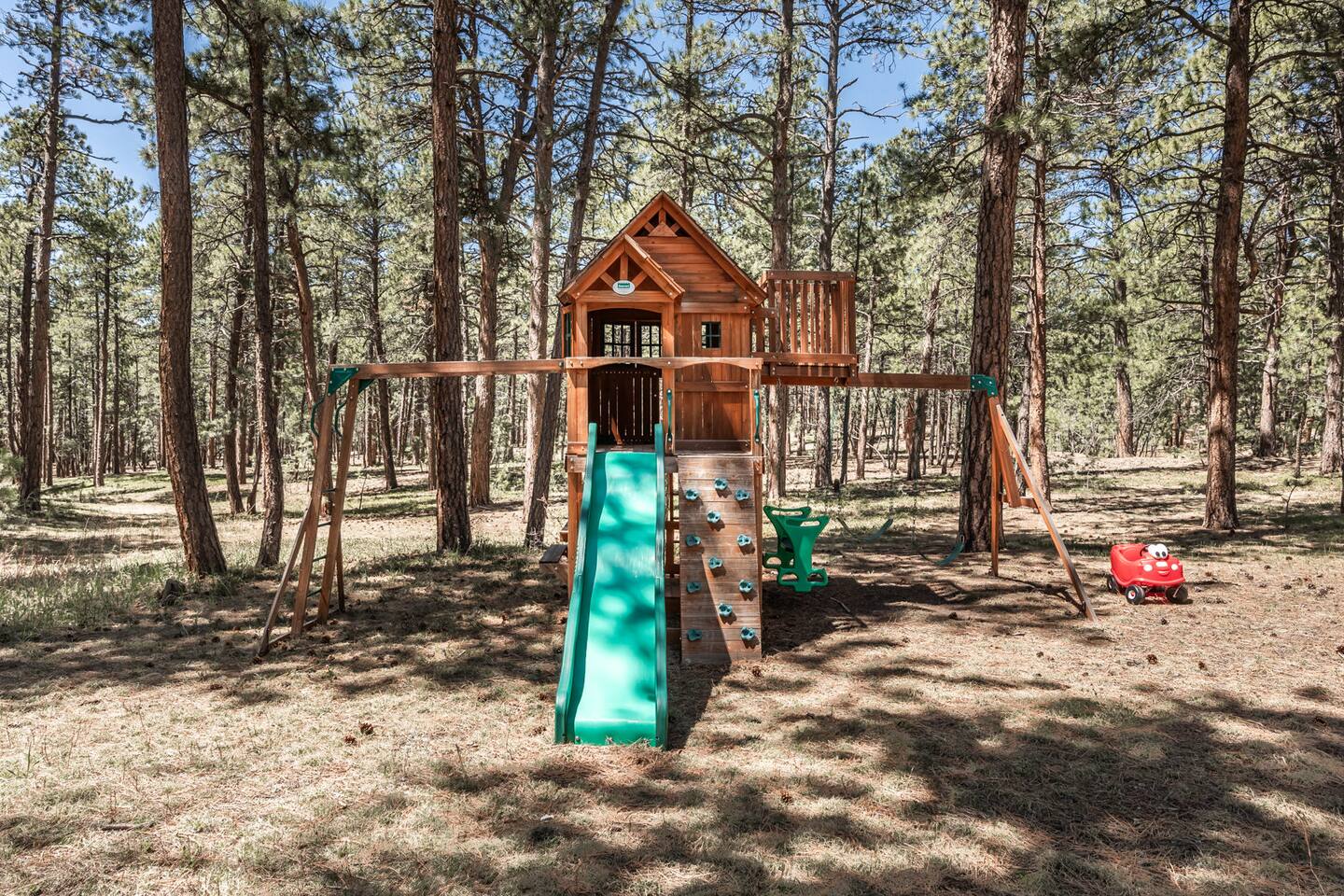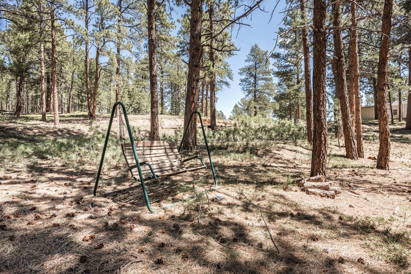 Tucked away in a landscape of soaring Ponderosa Pine Trees, this 5 acre family rancher offers a peaceful, comfy forest getaway in beautiful Black Forest. Located 15 minutes from USAFA. Remodeled in 2024 by an Air Force family, you’ll love the thoughtfully designed & inviting living spaces. Enjoy the fenced in portion of the yard or wander past the tree swing to the acreage & play equipment. Make memories with a game night or time under the lights on the back patio. 2 Primary King bedrooms!