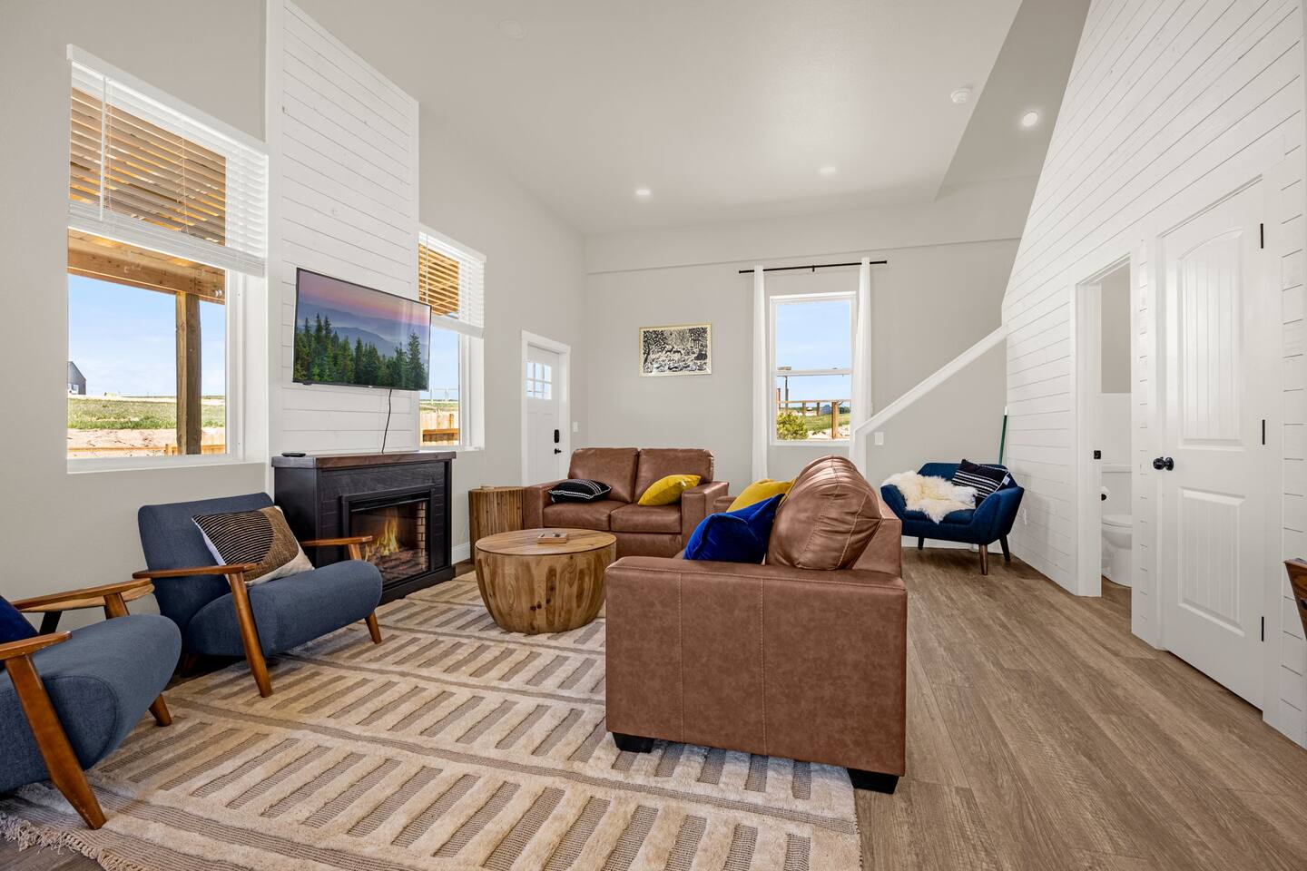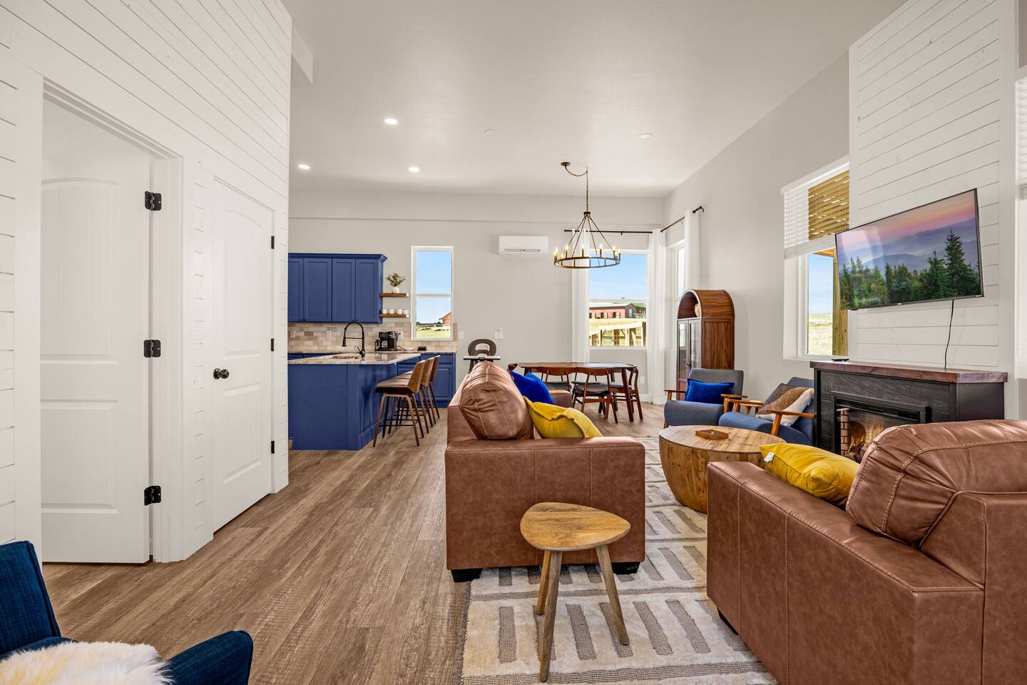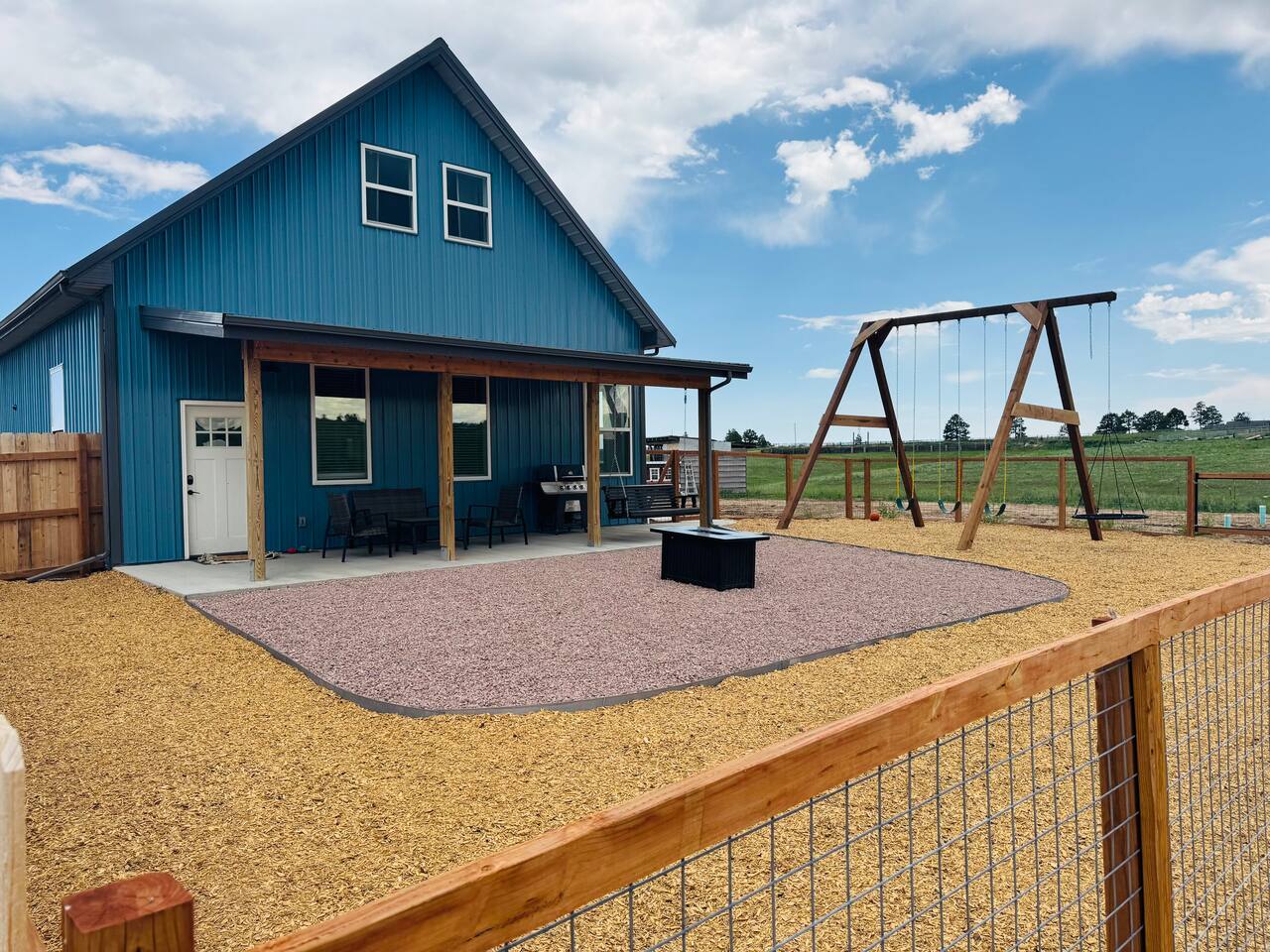 Experience a Hygge hug of soft textiles & warm finishes in this brand-new family guesthouse that gives a sense of calm throughout. Step outside to quiet rolling hills & mountain-view sunsets, all from the safety of a fully enclosed yard where little ones can play freely. Inside, you'll find games, gathering spaces, and deeply comfortable places to rest & reconnect. Enjoy the rural rolling hills of a 5-acre Colorado property while being 15 minutes from USAFA, local amenities & Ford Amphitheater.