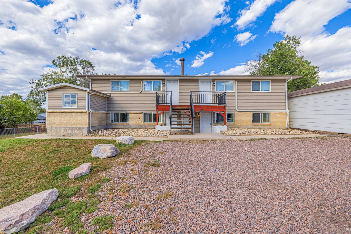 The main cross-streets are Powers & Palmer Park Blvd. The building is tucked away at the end of a quiet cul-de-sac. The neighborhood is older and perfectly imperfect. There are dogs allowed in the two lower units (this is an upper unit).