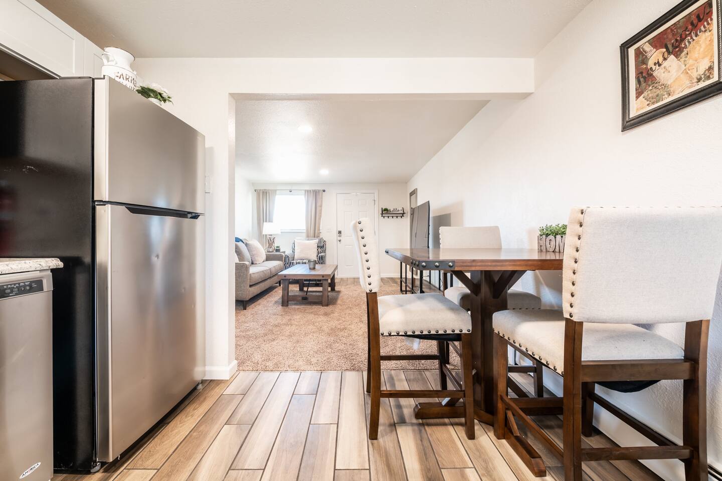 Our adorable 745 SQFT apartment is tucked away at the end of a cul de sac with a beautiful Pikes Peak view & is near many CO Springs attractions, grocery stores & shopping. You will be welcomed with a sparkling clean space & thoughtful touches including coffee, spices, & oil. The 2 bedrooms & 1 full bath have been freshly remodeled. Keeping your comfort in mind, we have included an LED Smart TV (w/YoutubeTV), radiant heat, private parking, & laundry (coin-op). We are excited to host your stay!