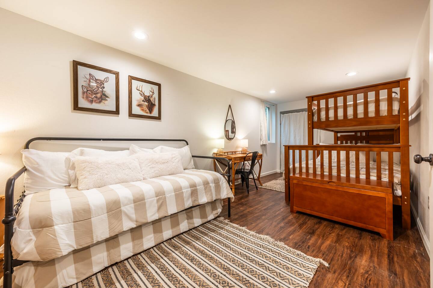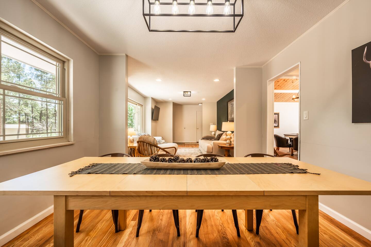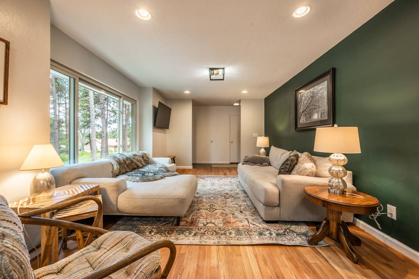 Pull into the circular driveway that can comfortably park 3-5 cars or use the two car garage. Use the walkway or two entry steps that lead to main level living and dining along with 3 King bedrooms and an office. The basement boasts the gym, game room, bunk room, and two Queen bedrooms (along with several more beds). The backyard has a slack line, an enclosed dog run, a hammock and lots of room to roam amongst the Ponderosa Pines. Designed for larger groups, we can sleep up to 16, so think of us for your next family gathering, retreat, or vacation outing with friends. You'll love your time at this home as much as the local area, with several parks, trails, in addition to being just short drive to the Ford Amphitheatre, and a host of entertainment options. Our goal is to offer you every amenity stated in our listing. That being said, sometimes things break and some amenities may not be available for part or even all of your stay & are typically not reimburse able. If you notice a problem, we trust you will bring it to our attention right away. If we know of an issue we will fix it ahead of your stay or notify you. We do our best to proactively care for the home and provide weekly maintenance to make sure everything is ready and in good working order for your stay. This is our 8th year as super hosts and we go above and beyond to help with any issue brought to our attention. We are here to make sure you and the house are cared for.