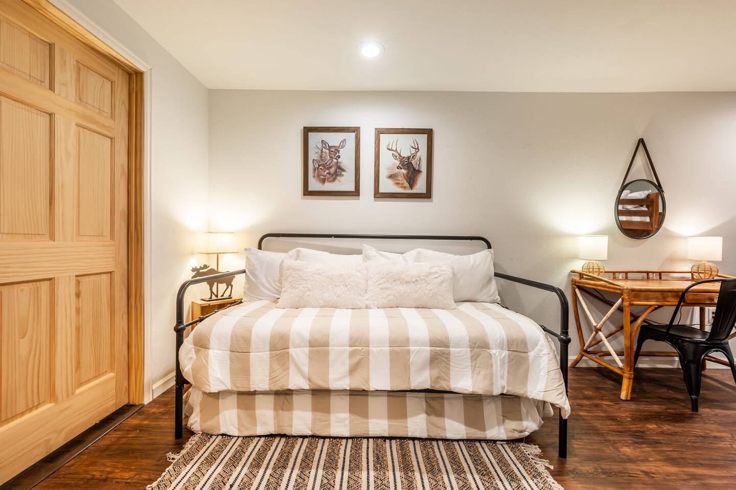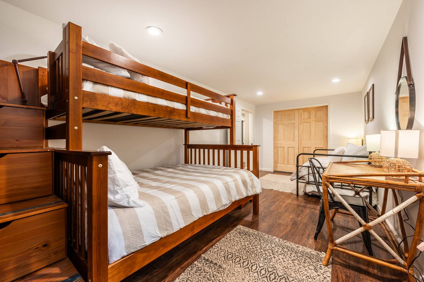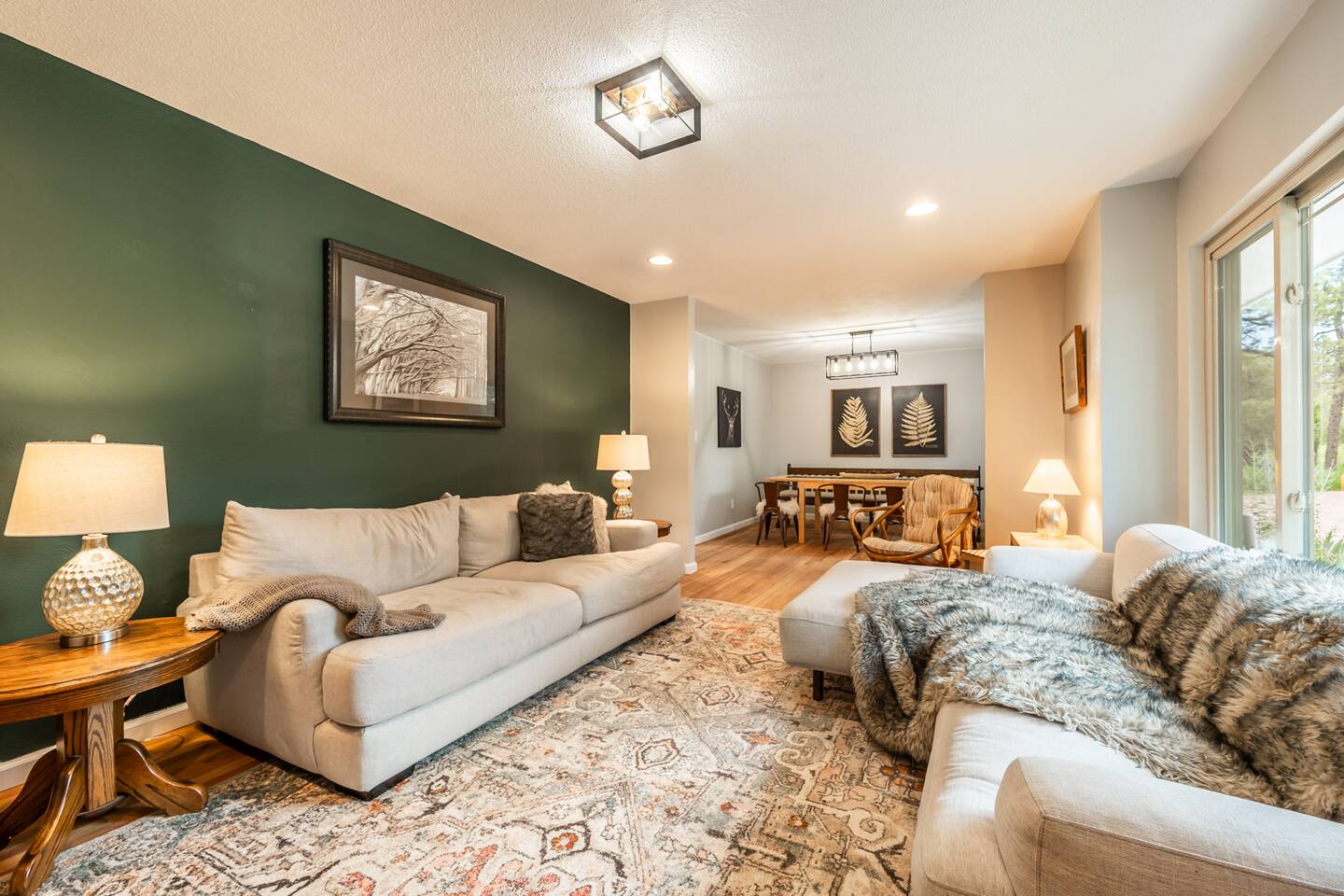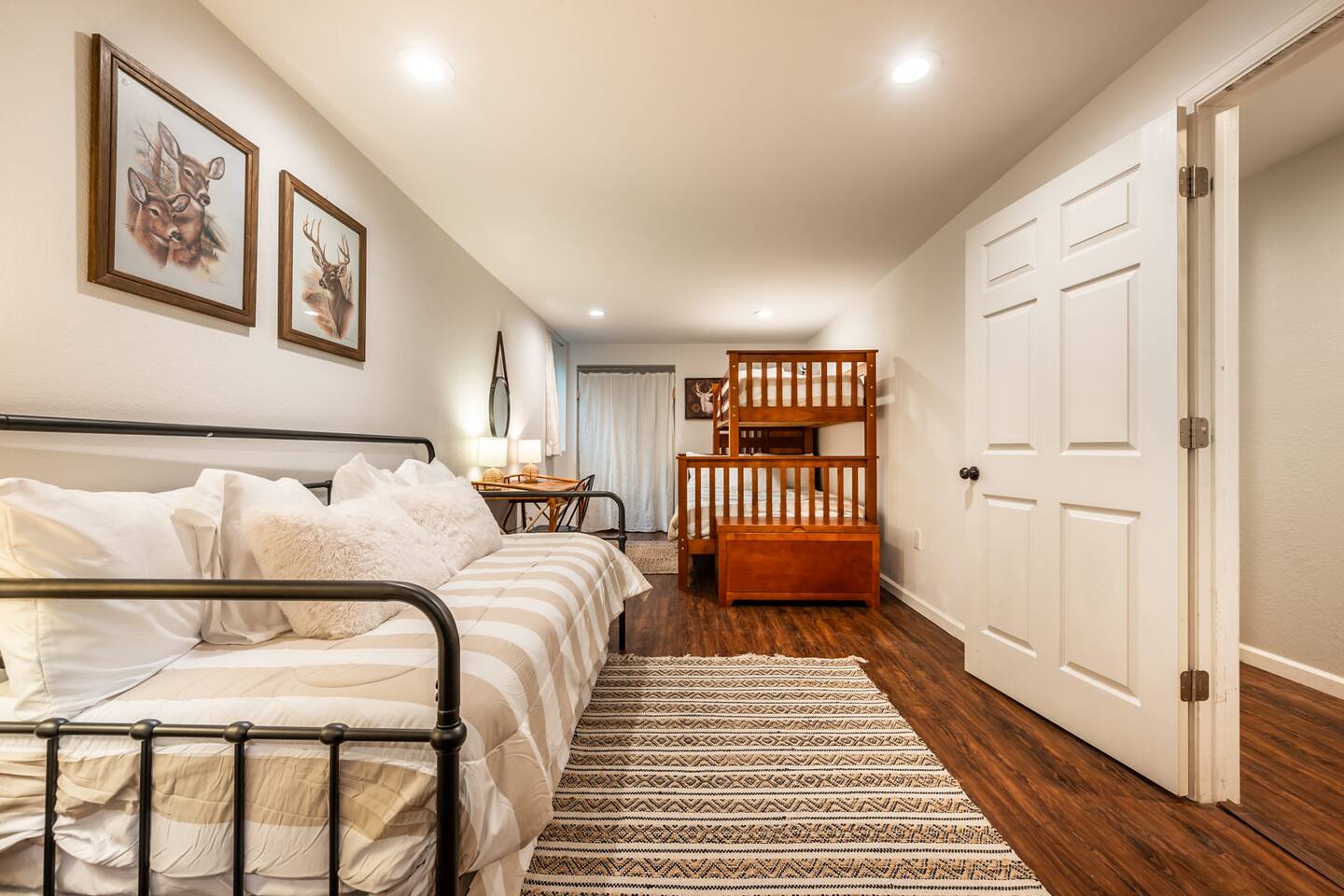 Pull into the circular driveway that can comfortably park 3-5 cars or use the two car garage. Use the walkway or two entry steps that lead to main level living and dining along with 3 King bedrooms and an office. The basement boasts the gym, game room, bunk room, and two Queen bedrooms (along with several more beds). The backyard has a slack line, an enclosed dog run, a hammock and lots of room to roam amongst the Ponderosa Pines. Designed for larger groups, we can sleep up to 16, so think of us for your next family gathering, retreat, or vacation outing with friends. You'll love your time at this home as much as the local area, with several parks, trails, in addition to being just short drive to the Ford Amphitheatre, and a host of entertainment options. Our goal is to offer you every amenity stated in our listing. That being said, sometimes things break and some amenities may not be available for part or even all of your stay & are typically not reimburse able. If you notice a problem, we trust you will bring it to our attention right away. If we know of an issue we will fix it ahead of your stay or notify you. We do our best to proactively care for the home and provide weekly maintenance to make sure everything is ready and in good working order for your stay. This is our 8th year as super hosts and we go above and beyond to help with any issue brought to our attention. We are here to make sure you and the house are cared for.