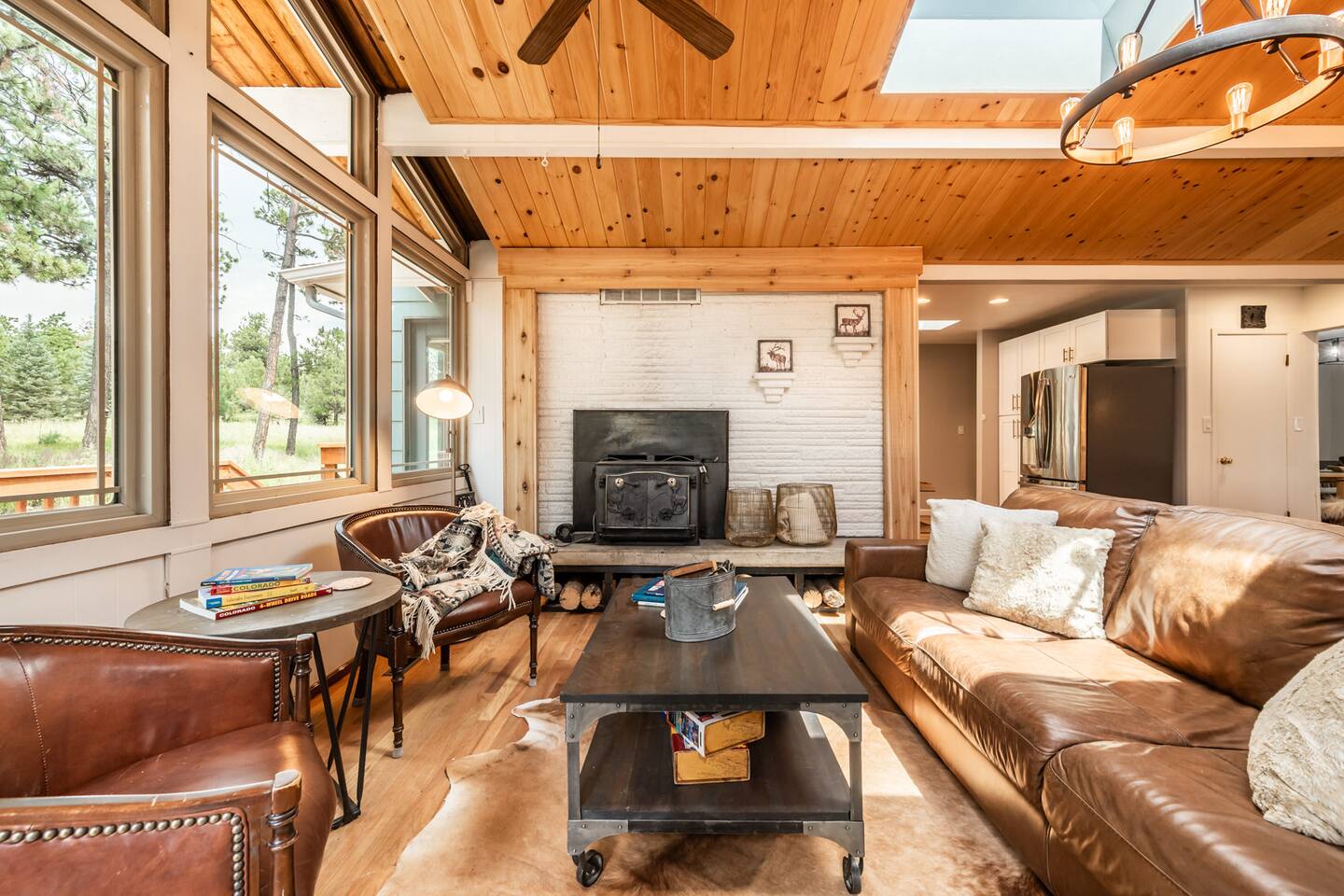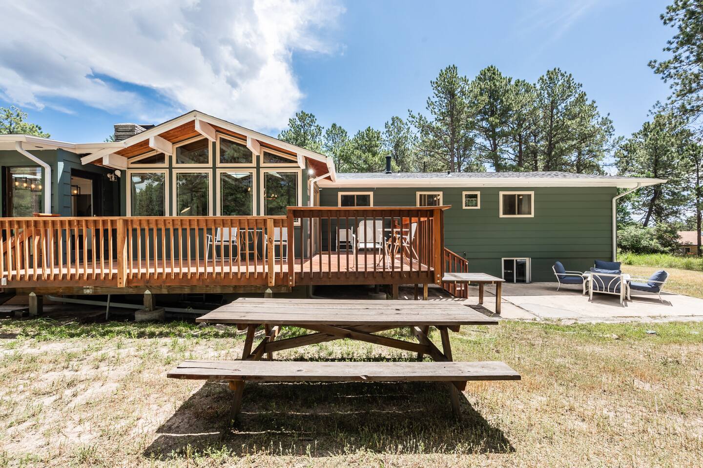 The beautiful Soul care cabin offers fresh air, sunshine, Colorado charm & everything you need to relax and refresh. There are 3 acres to explore & includes a fenced in pasture for the kids to play, an enclosed dog run for your dog. Make memories in the game room, home gym or reading nook. The home boasts A/C, office, & 6 bedrooms (3 King beds)make it a comfortable place for the whole family. Minutes from local restaurants & located 30 minutes from Garden of the gods & other attractions.