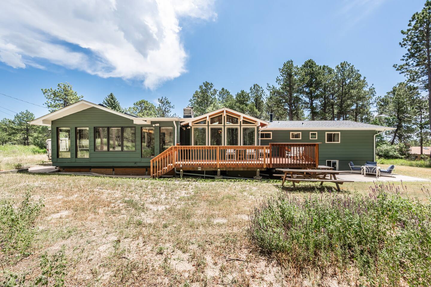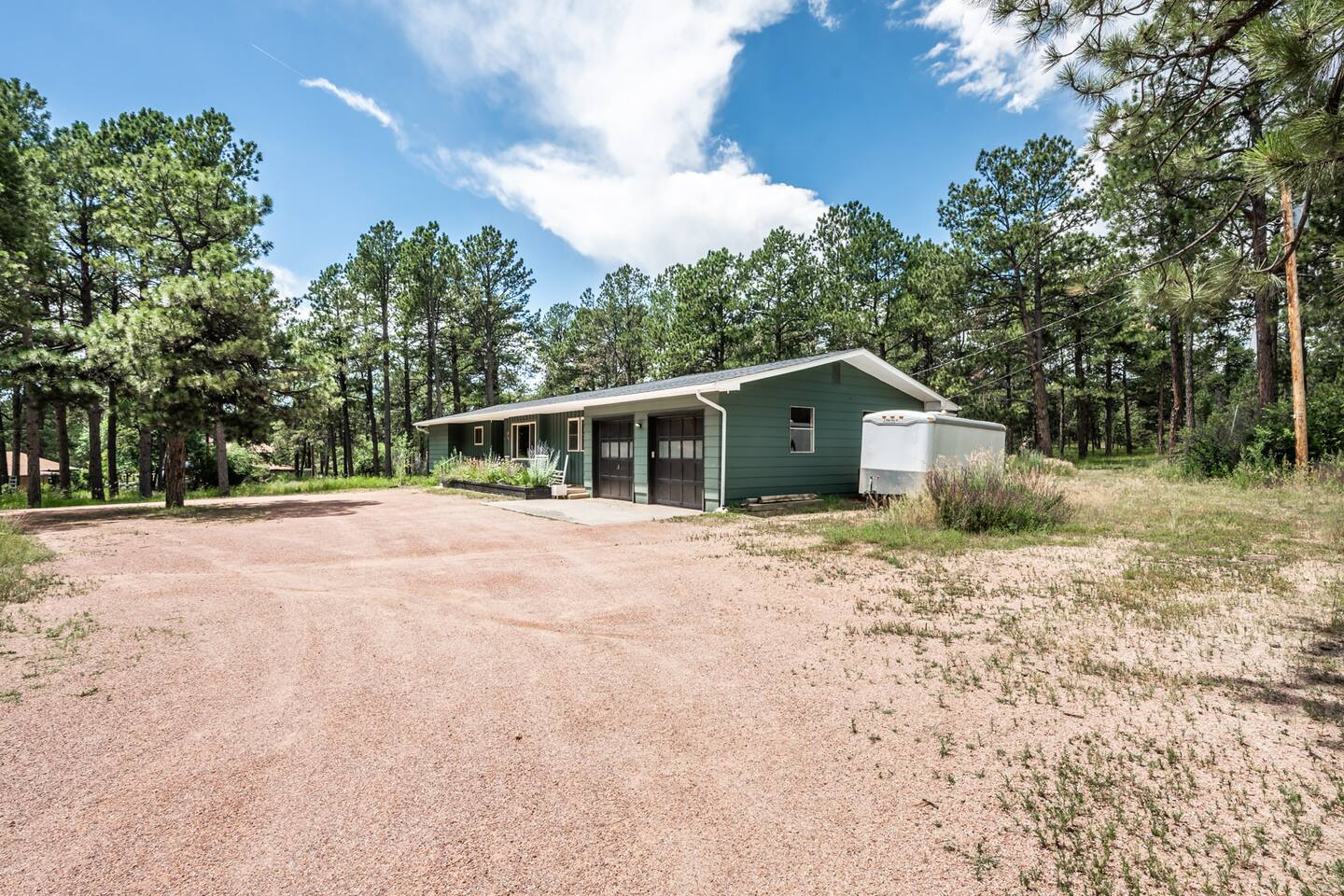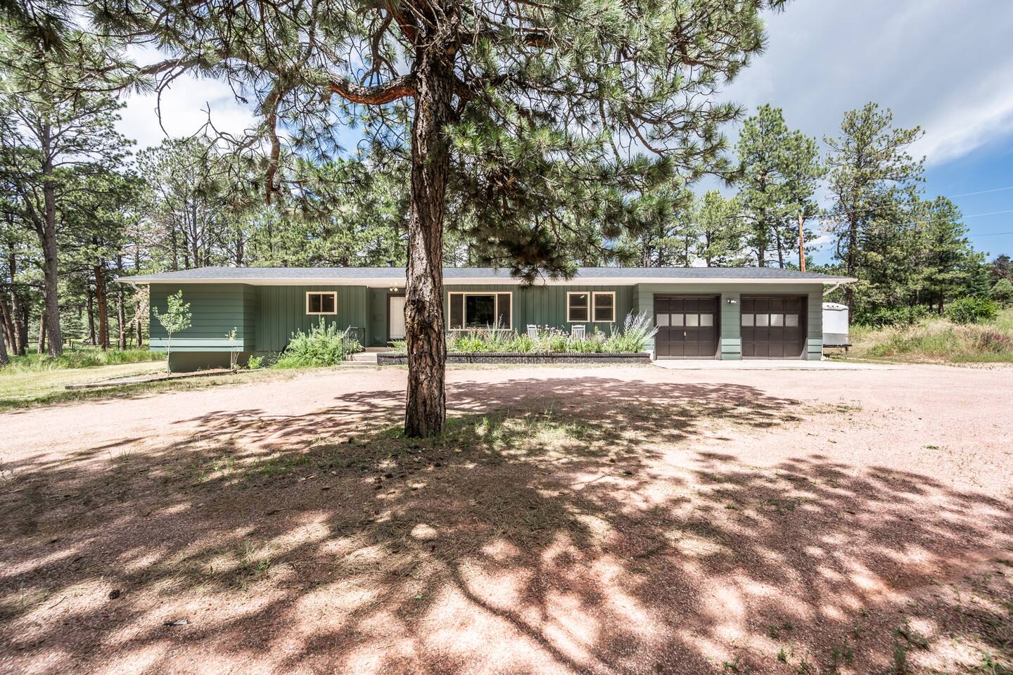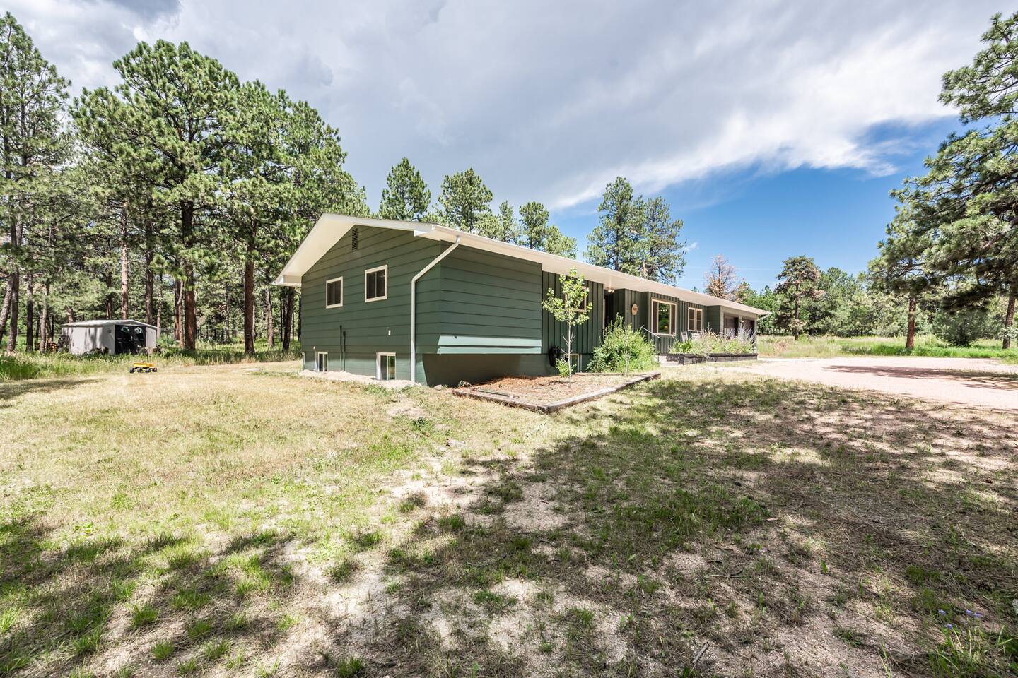 The house is located in an acreage neighborhood in Black Forest in Colorado Springs.