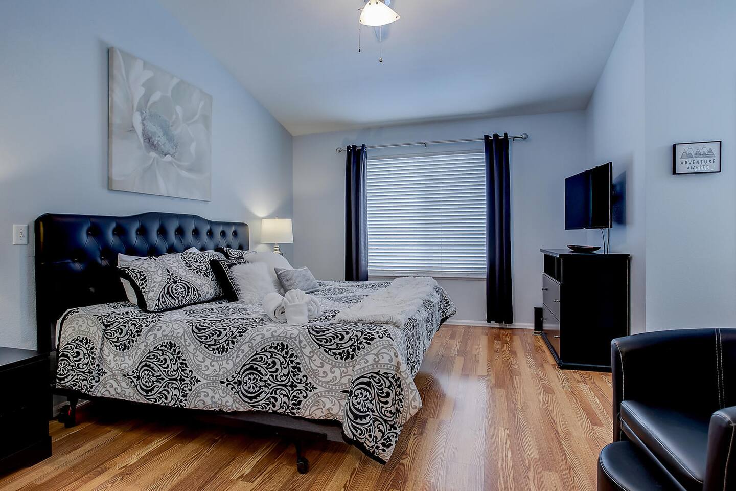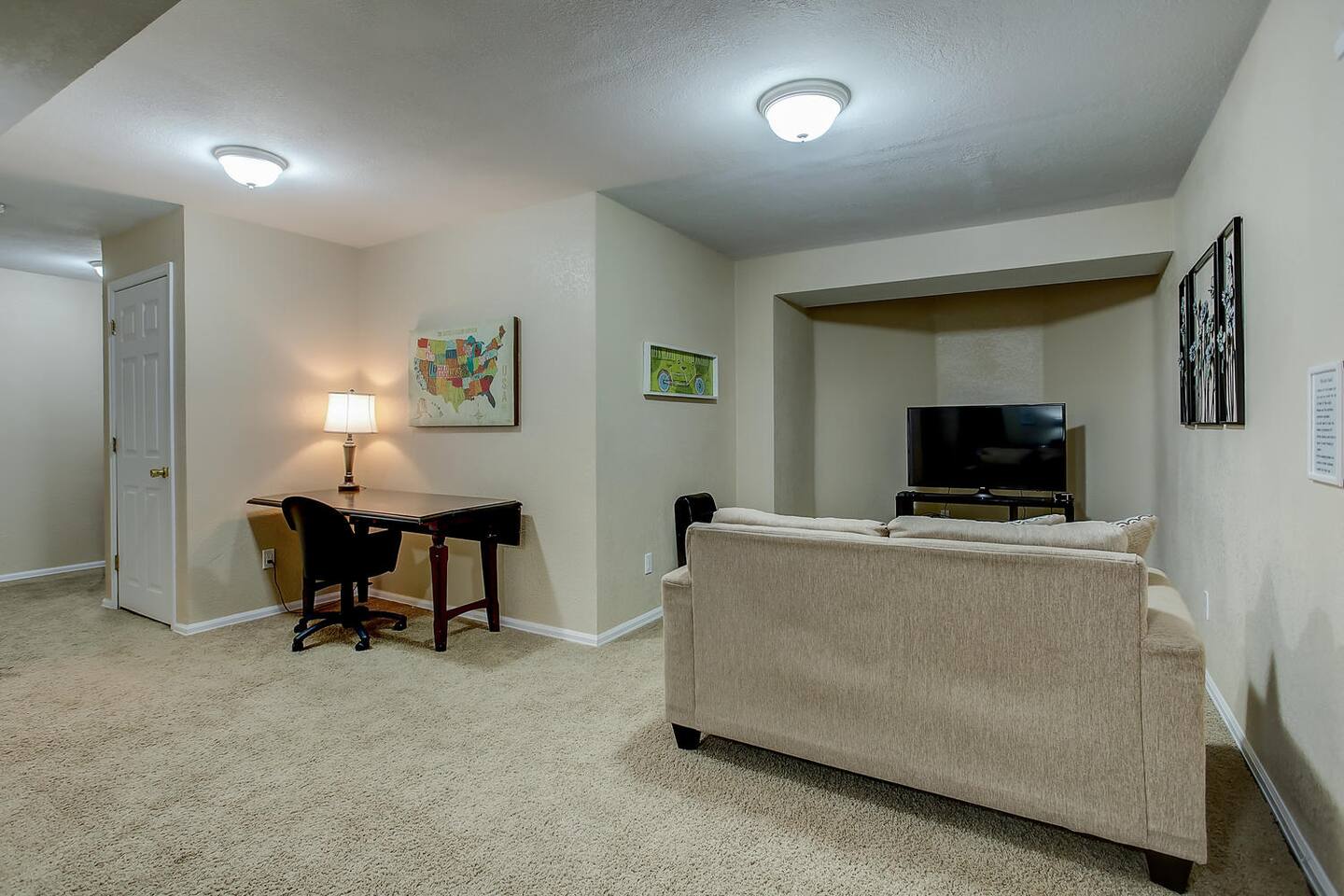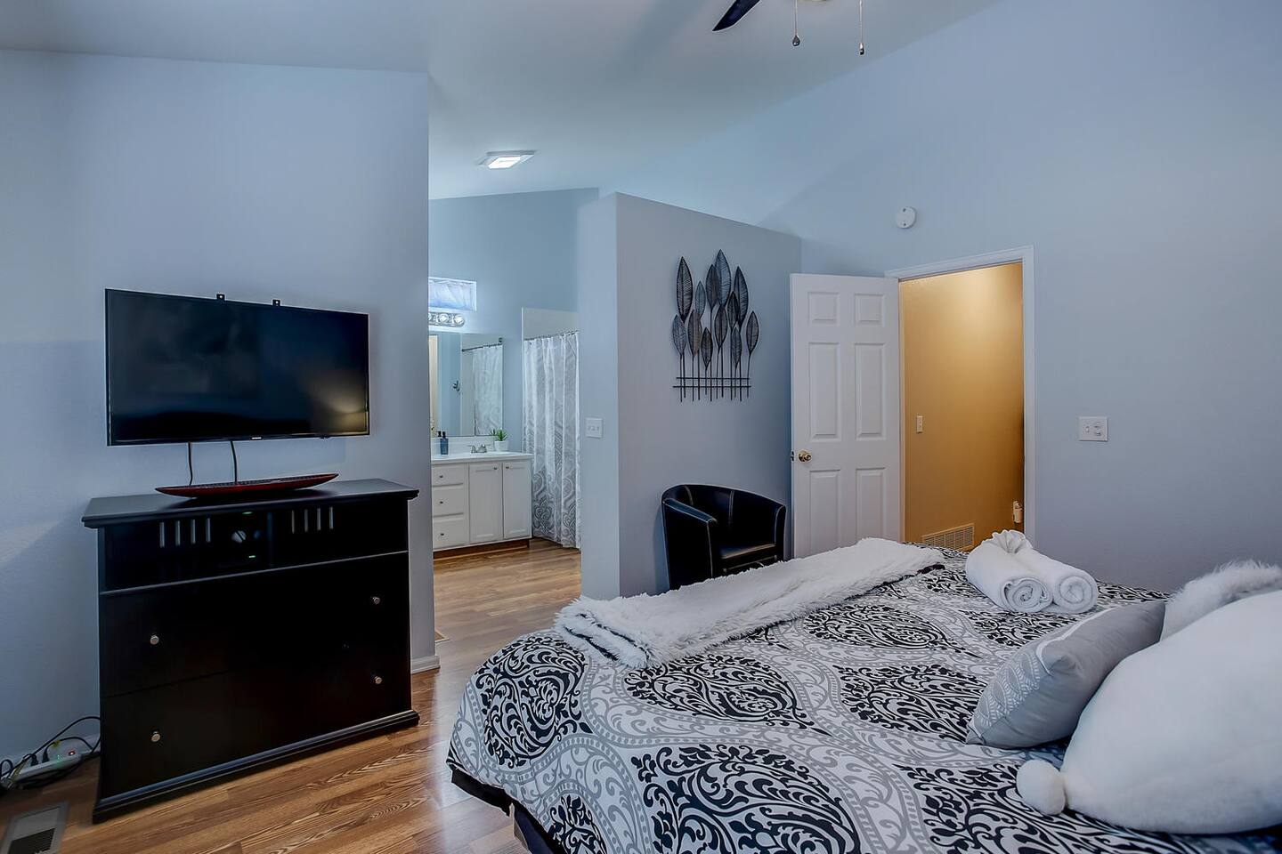 A master and two bedrooms, kitchen, dining area, living room, and guest bath are all located on the main level. A flight of stairs leads to the lower level where there are two more private bedrooms, a semi-private bedroom, a bathroom, laundry facilities, and a large open area with additional sleeping accommodations. Private back yard has a large table, grill, and fire pit for guests to use. Smart TVs are located in the living room, master bedroom, and lower level, all with Xfinity cable access. Lower level TV area has a DVD player to watch movies. Sofa bed is a small twin size. The home is centrally located so that going north, south, or west you are only 20-30 minutes away from so much that Colorado Springs has to offer: Garden of the Gods Park, Old Colorado City, Peterson Air Force Base, The Broadmore Hotel, Seven Falls, Manitou Springs, Fort Carson, Pikes Peak and Cog Railway, Cheyenne Mountain Zoo. For the security of the home and our guests there is a motion activated camera located in the front doorbell outside.