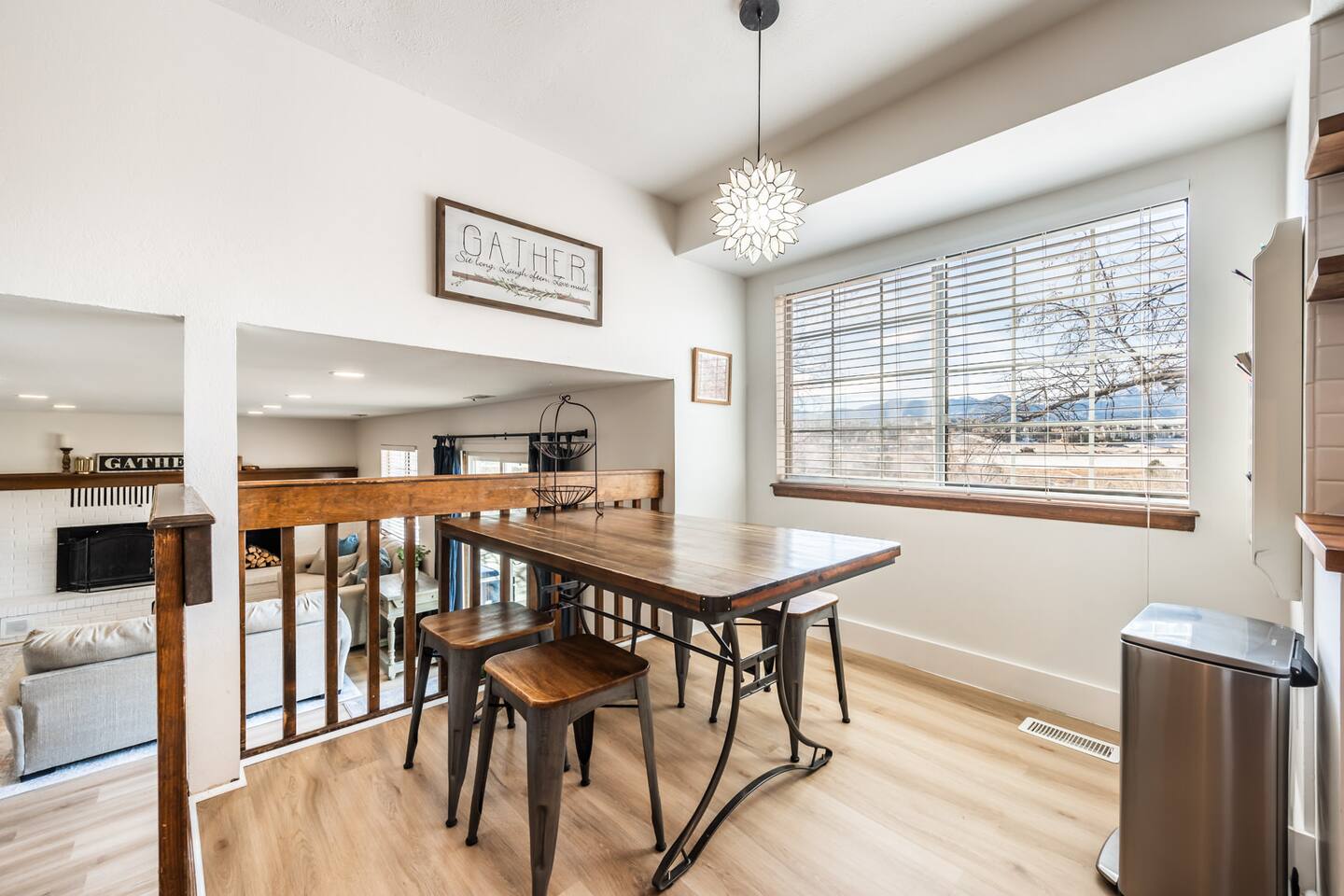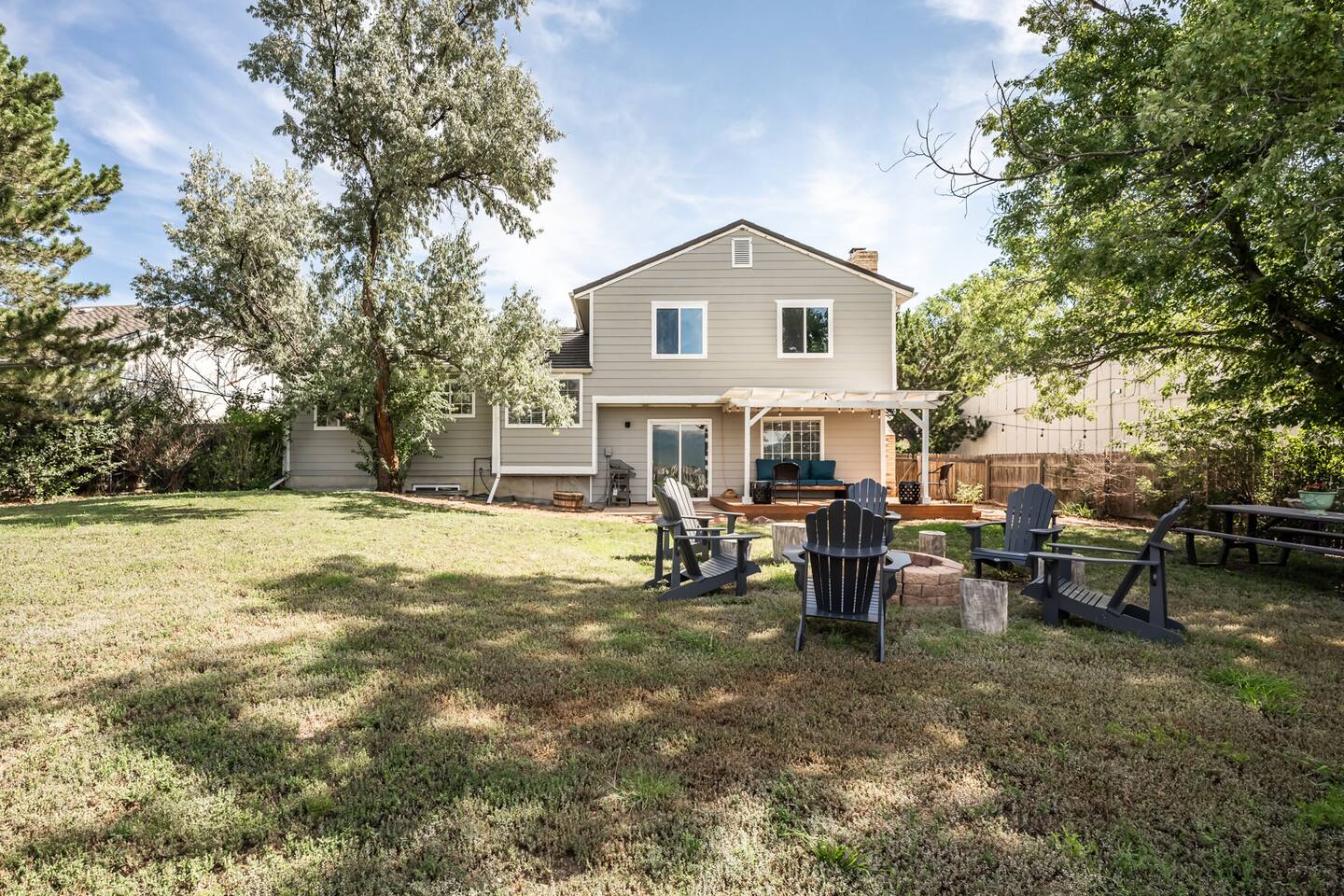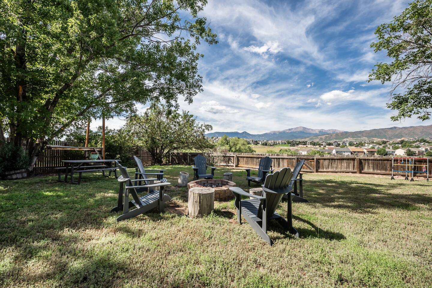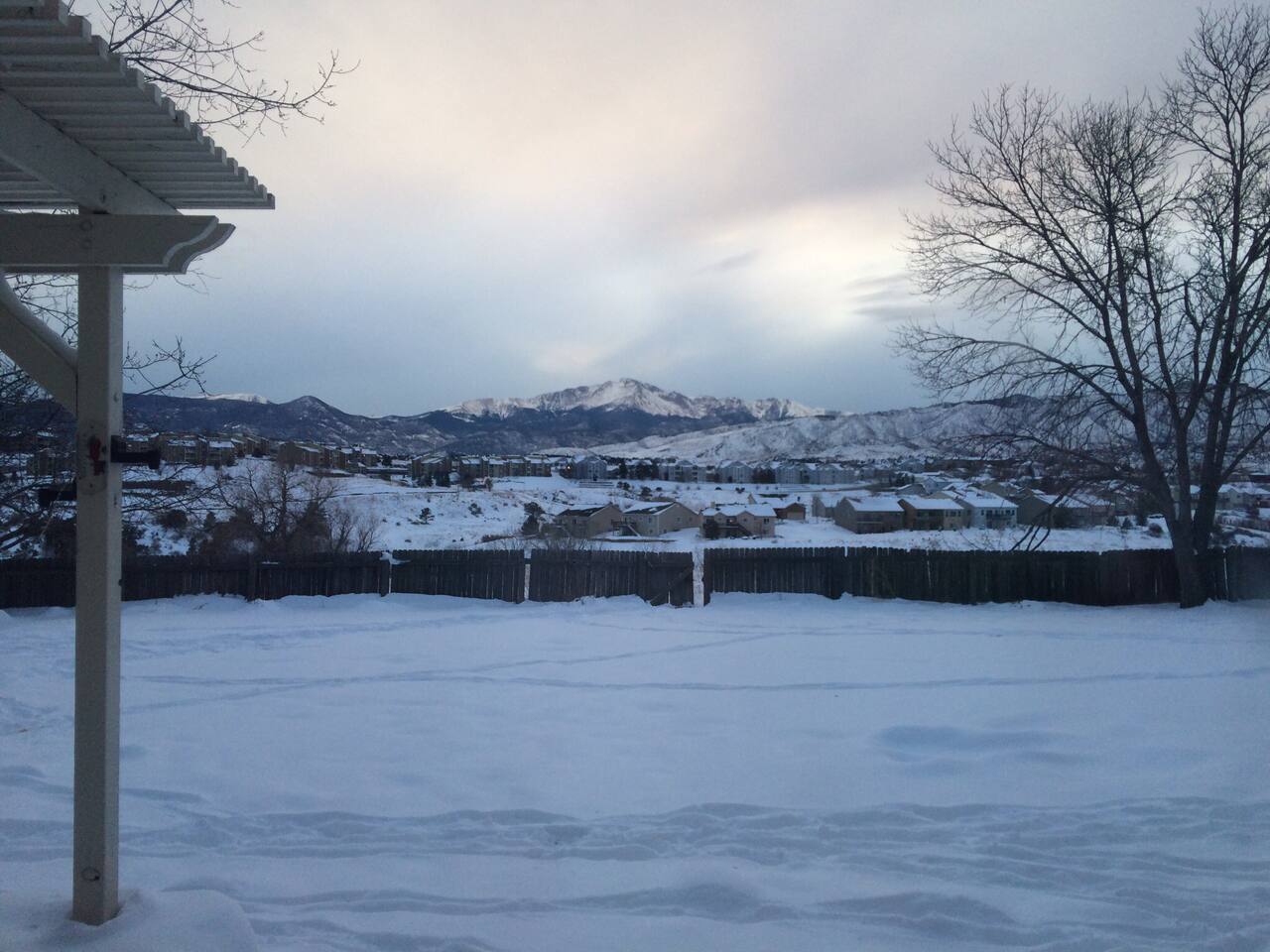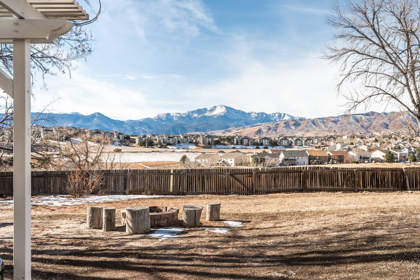 Find The newly renovated Gathering House in a great neighborhood close to the Rocky Mountains on the peaceful West side. Enjoy a Perfect VIEW of Pikes Peak. Open the back gate to open-space, trails, & a sledding hill. Centrally located & close by scenic Garden of the gods, Pulpit Rock, Ute Valley Park & USAFA. Enjoy close restaurants, a fire indoors or out, a large yard, twinkle light patio & fire pit. The home is newly renovated, comfy, cozy, & warm. Perfect for gathering. Welcome & have Fun!