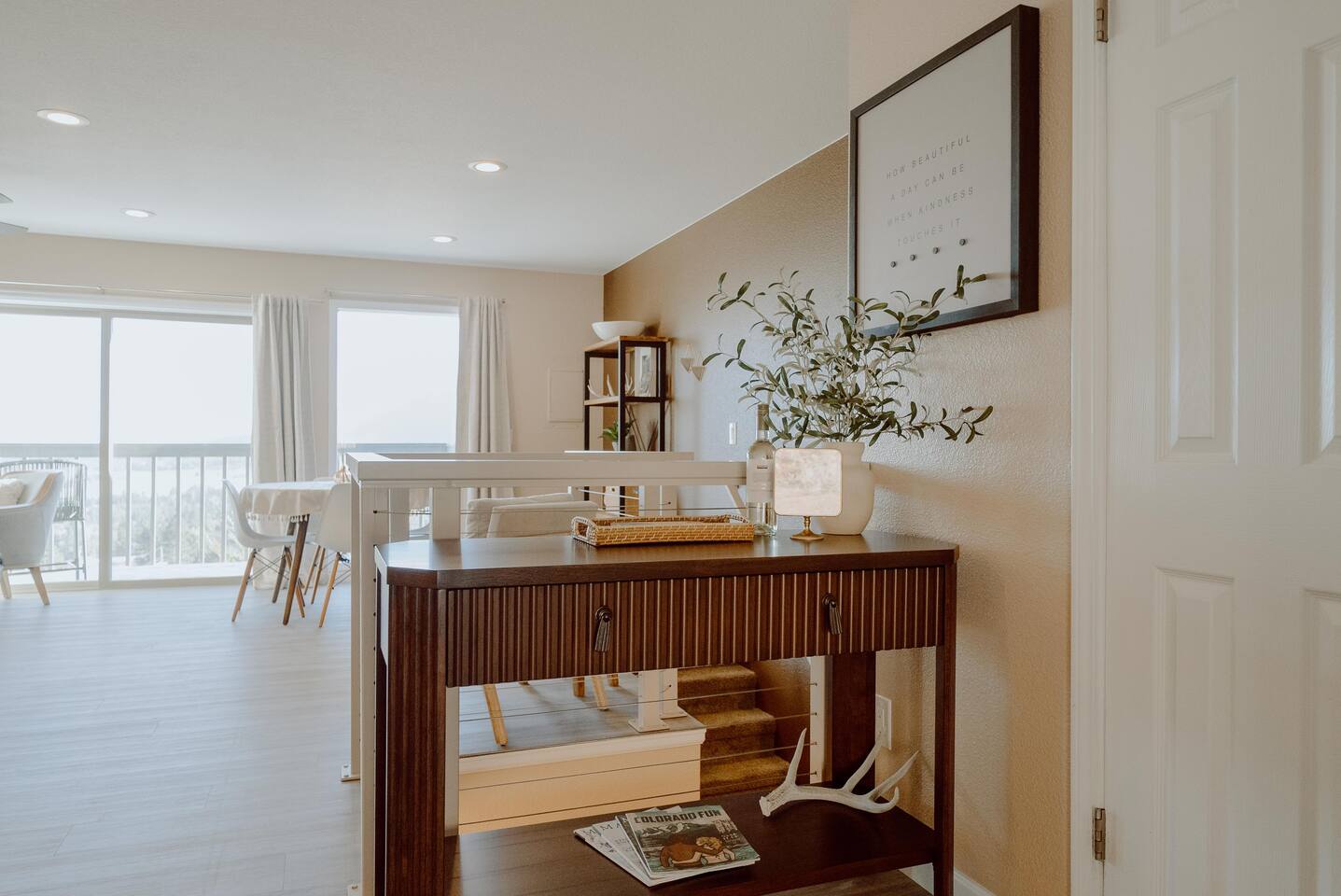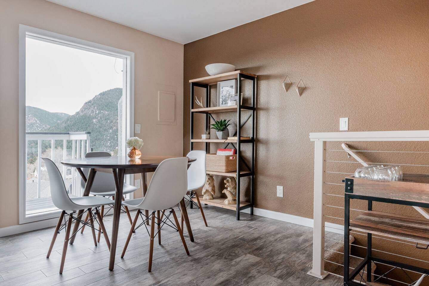 This townhouse is located at one of the highest points in Palmer Lake, tucked into the mountainside. The town is a little gem. Quiet and quaint, it offers great restaurants, views, and outdoor activities, including trails and water sports.